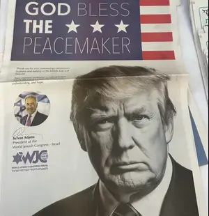 העיתון הציב הבוקר בשער את תמונתו של הנשיא טראמפ תחת הכותרת “אלוהים יברך את משכין השלום”. שער העיתון ההיסטורי צבר תאוצה ברשת. גם קייטלין קולינס שיתפה השער המרגש – וכתבה: “עמוד השער של ה’ג’רוזלם פוסט'”