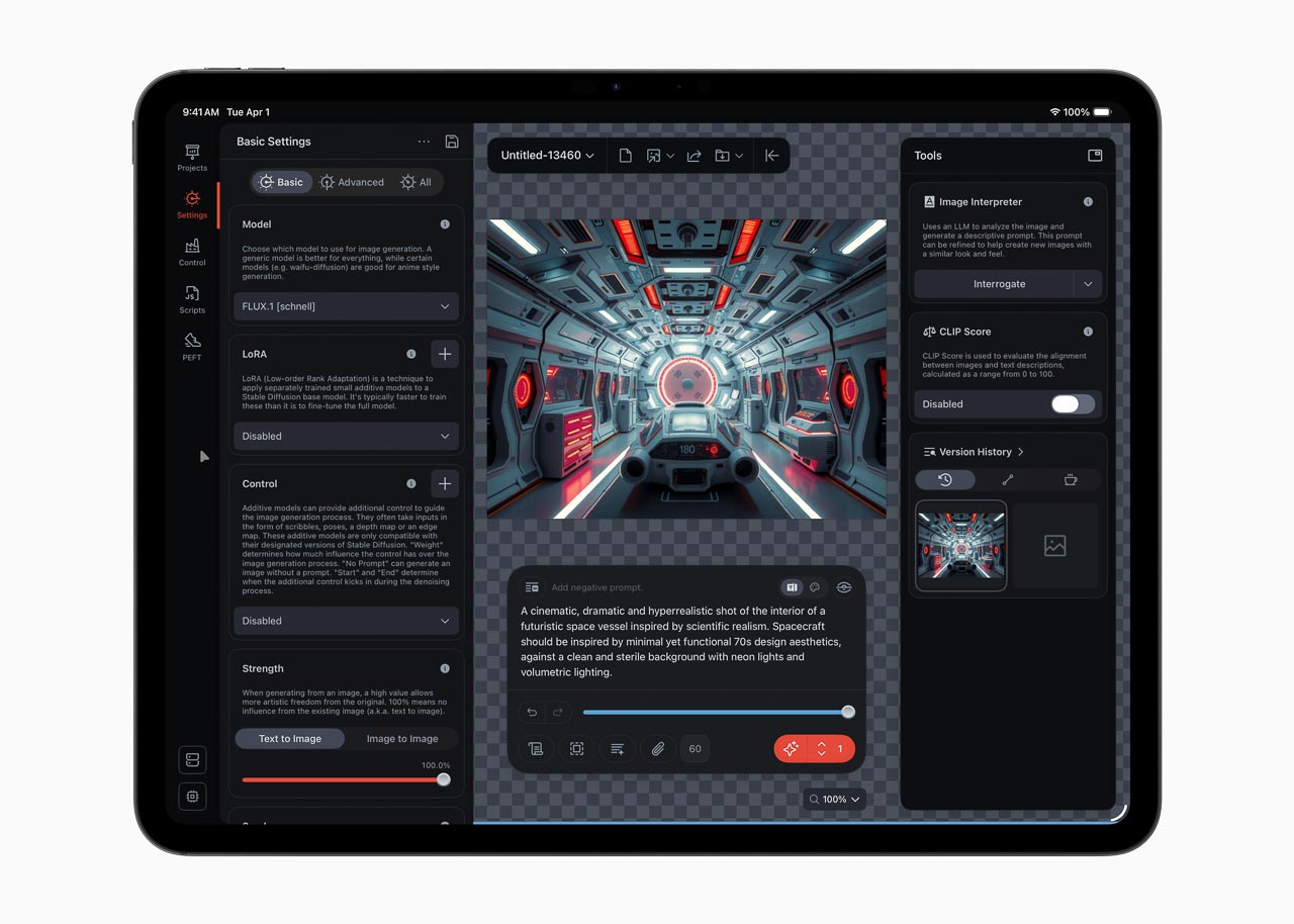 Apple highlights apps like Draw Things for demonstrating fast, on-device AI text-to-image generation on the M5 MacBook Pro, where the app runs diffusion models entirely on device. On iPad Pro with M5, Apple cites up to 4 times faster AI image generation performance compared to M1 models and up to 2 times faster than M4 in apps that use on-device AI. DaVinci Resolve showcases AI video capabilities across both platforms, with AI video masking and upscaling running locally. iPad Pro delivers up to 3.7 times faster AI video upscaling compared to M1 models. On MacBook Pro, Topaz Video AI runs up to 1.8 times faster than M4 systems and 7.7 times faster than M1.