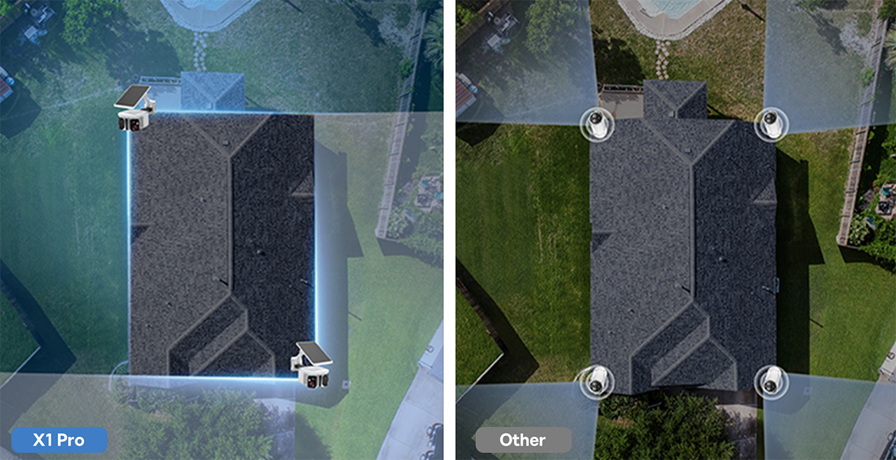 You’ll notice how the X1 Pro handles real-world scenarios that challenge single-camera systems. Picture monitoring package deliveries at your front door while simultaneously watching your backyard for pets or children. The dual tracking means you can follow two subjects simultaneously and hand off seamlessly, removing blind spots and protecting two areas at the same time.