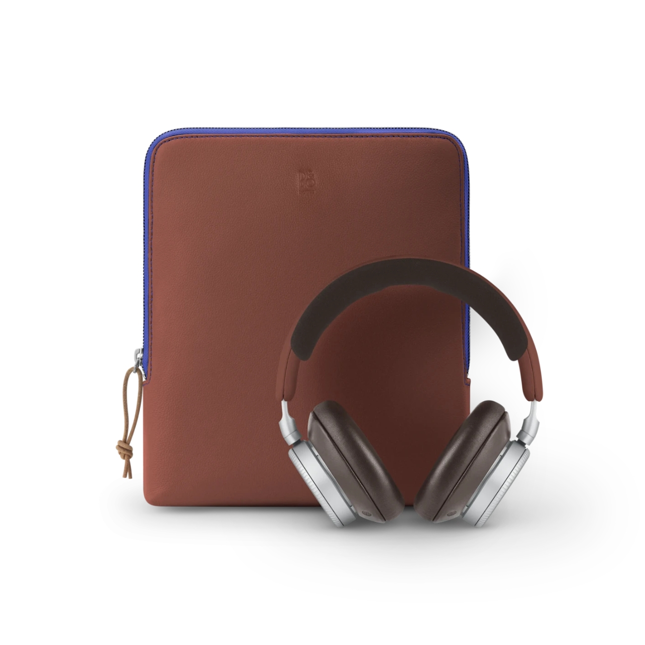 Let’s start with the Beoplay H100 headphones, which might just be the most gorgeous pair of cans I’ve seen this year. The H100 comes in a muted Century Brown finish, accented by a Century Red leather headband and Century Blue detailing. It’s like wearing a piece of mid-century modern furniture on your head, but in the best possible way. These aren’t your standard wireless headphones. They’re furnished with 40mm custom-made titanium drivers housed behind aluminium grills, plus Dolby Atmos capabilities and advanced noise cancelling. Bang & Olufsen actually claims these are still the best headphones they’ve ever created, which is saying something for a company with nearly a century of audio expertise.