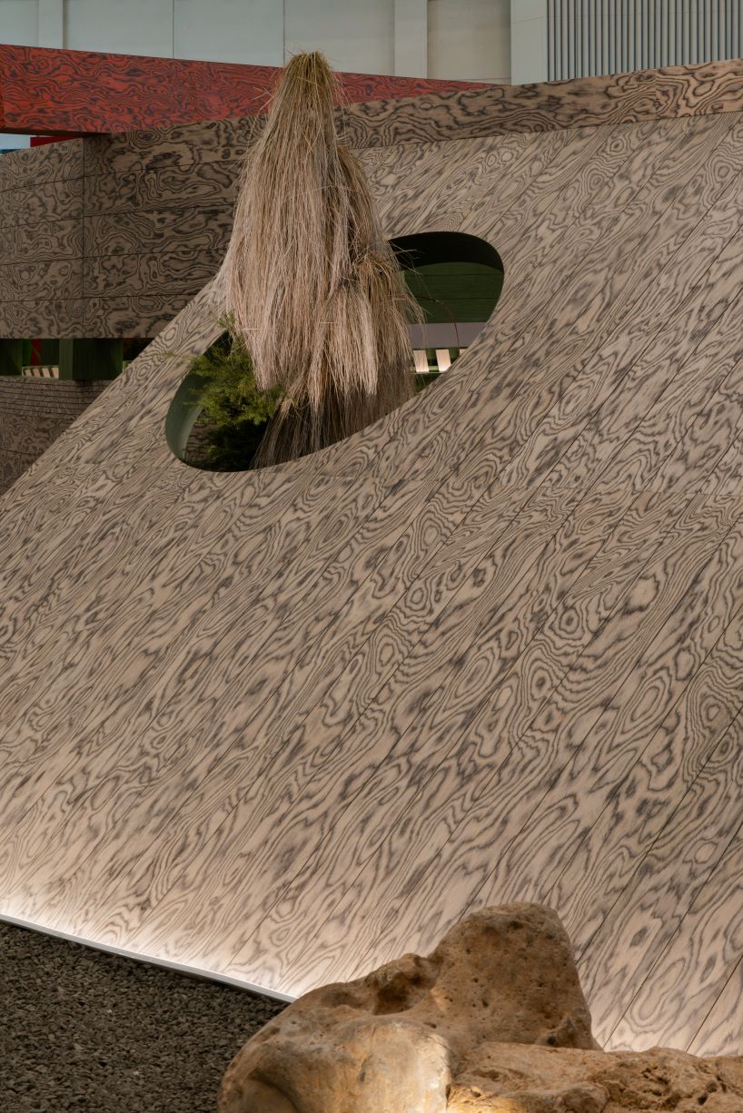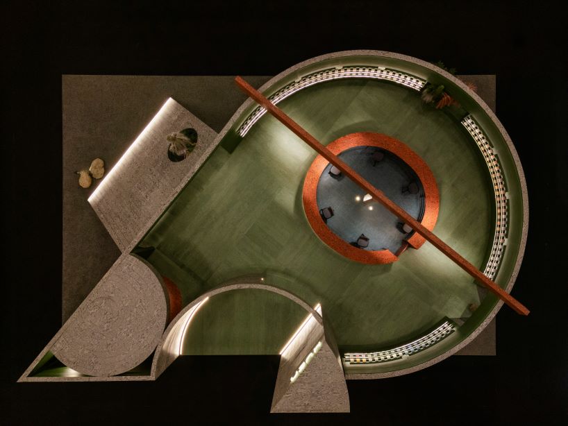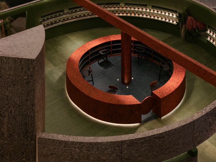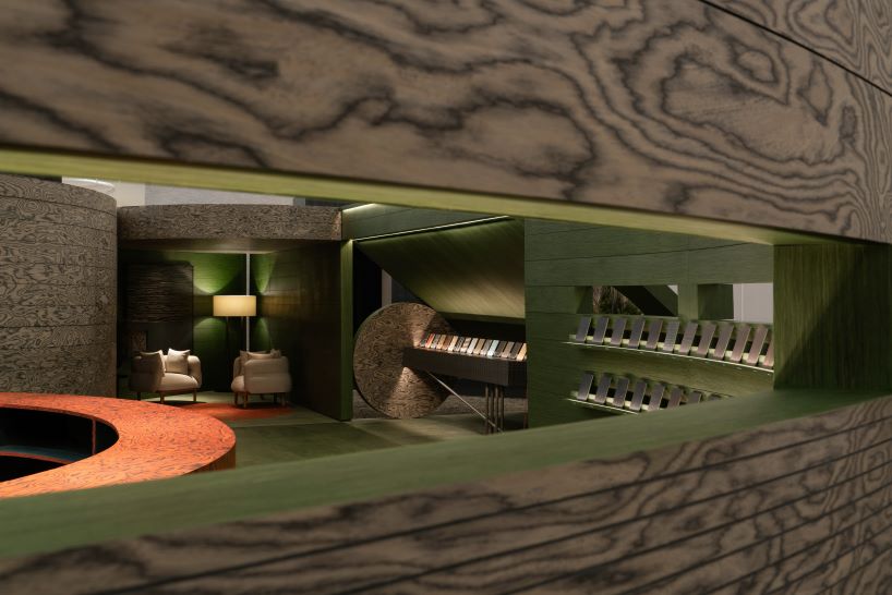 The post circular timber pavilion with voids and slits displays variety of veneer textures and finishes appeared first on designboom | architecture & design magazine.