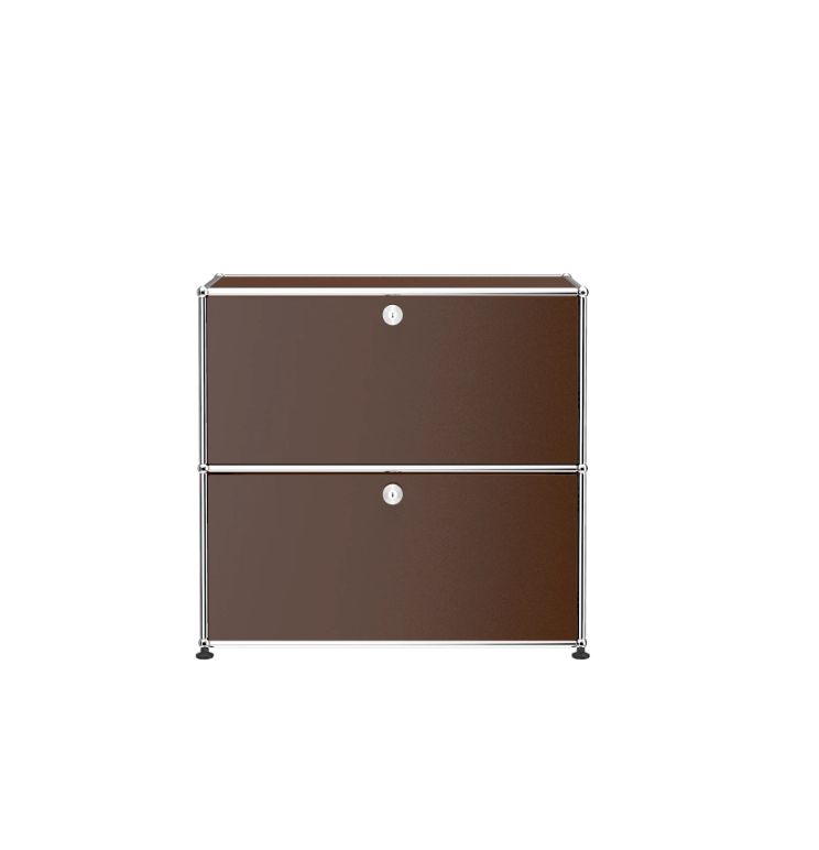 A stylish storage credenza with a 14″H top drop down door and a 14″H bottom drawer that lock with the twist of a coin. Available in 14 standard surface colors.