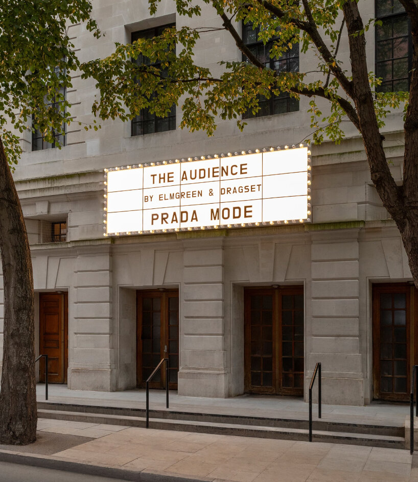 Elmgreen & Dragset craft hyperrealistic cinemagoer sculptures in an immersive cinema installation for Prada Mode London. Titled The Audience, the project is at Town Hall in King’s Cross, London, from October 17th to 19th, 2025, coinciding with Frieze London. The temporary installation is part of Prada Mode, which is an ongoing global series of the brand focusing on site-specific events that combine art, design, and social experience. It has traveled to Osaka across a SANAA-designed pavilion as well as Tokyo with site-specific artworks curated by Kazuyo Sejima. Even Theaster Gates has created sonic and spatial immersion at Prada Mode in Abu Dhabi as well as in London, while the one in LA was transformed by Carsten Höller into the dubbed Prada Double Club carnival wonderland.