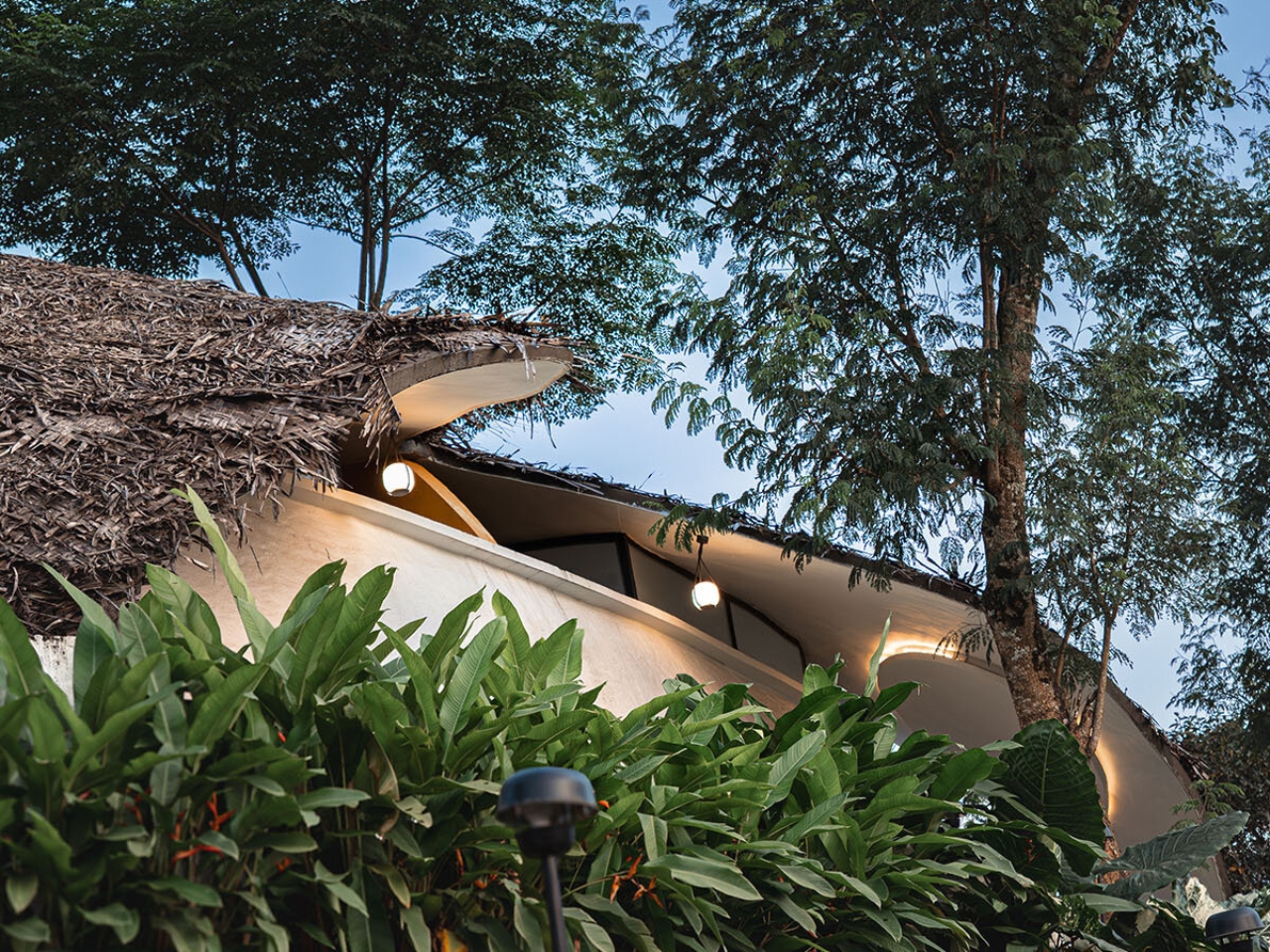 Picture a building that looks like it grew from the ground itself, its curved shell roof crowned with golden thatch that seems to flow seamlessly into the surrounding forest. This isn’t a fantasy structure from a fairytale, but Earth’s Embrace, a remarkable eco-retreat nestled in the lush hills of Wayanad, Kerala, that’s redefining what sustainable architecture can look like.