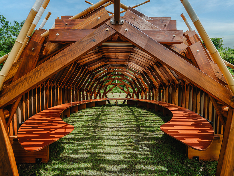 The post interlocking bamboo and cedar frames shape wild boar nest installation by cheng tsung feng appeared first on designboom | architecture & design magazine.