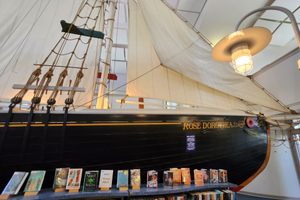 On the second floor of the small and quiet Provincetown Public Library, you’ll find a beautifully detailed half-scale model of a famous fishing schooner named the Rose Dorthea. Bookshelves full of children’s books sit along the side of the boat. It can be viewed up close or from the third floor mezzanine.