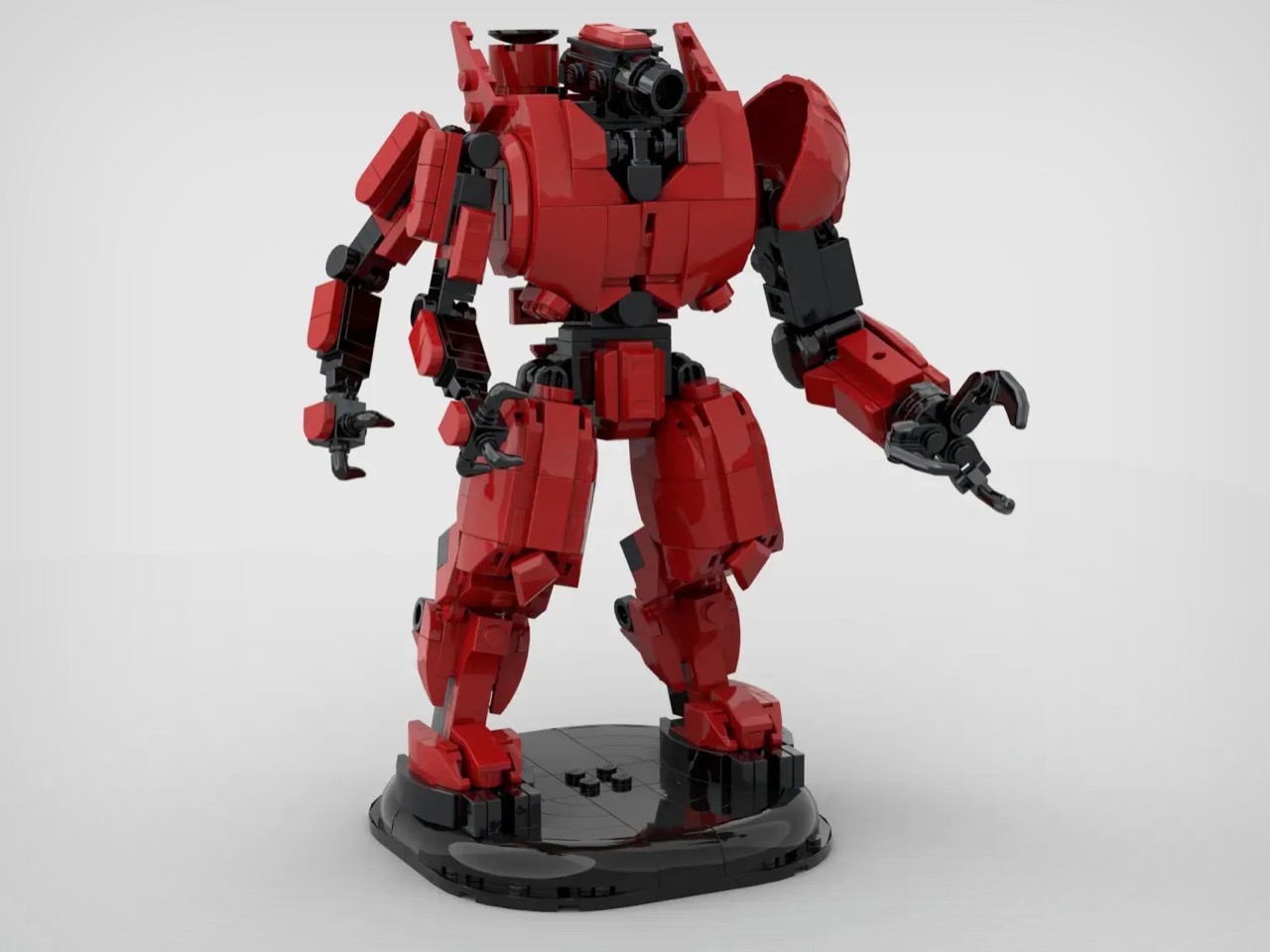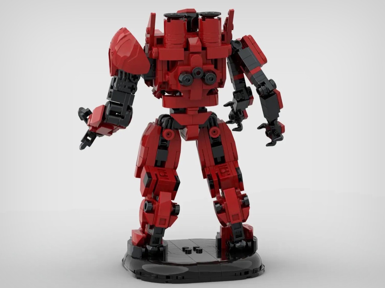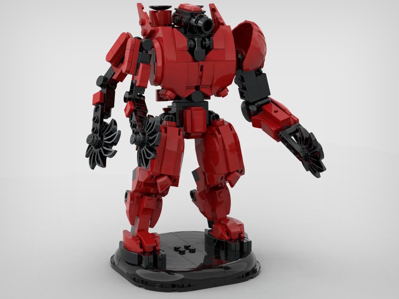 Next meet the Crimson Typhoon. The Chinese Jaeger’s triple-arm configuration was always going to be the toughest to pull off in LEGO form, and at 630 pieces, this is actually the smallest of the three builds. That makes sense when you consider the original design philosophy: Crimson was built for speed and agility, not brute force. The red and black color blocking works beautifully here, and those rotating saw blade hands are exactly the kind of detail that separates a good fan build from something worth producing. The regular pincer hands are included too, and you can merely swap out weapons, which I personally love.