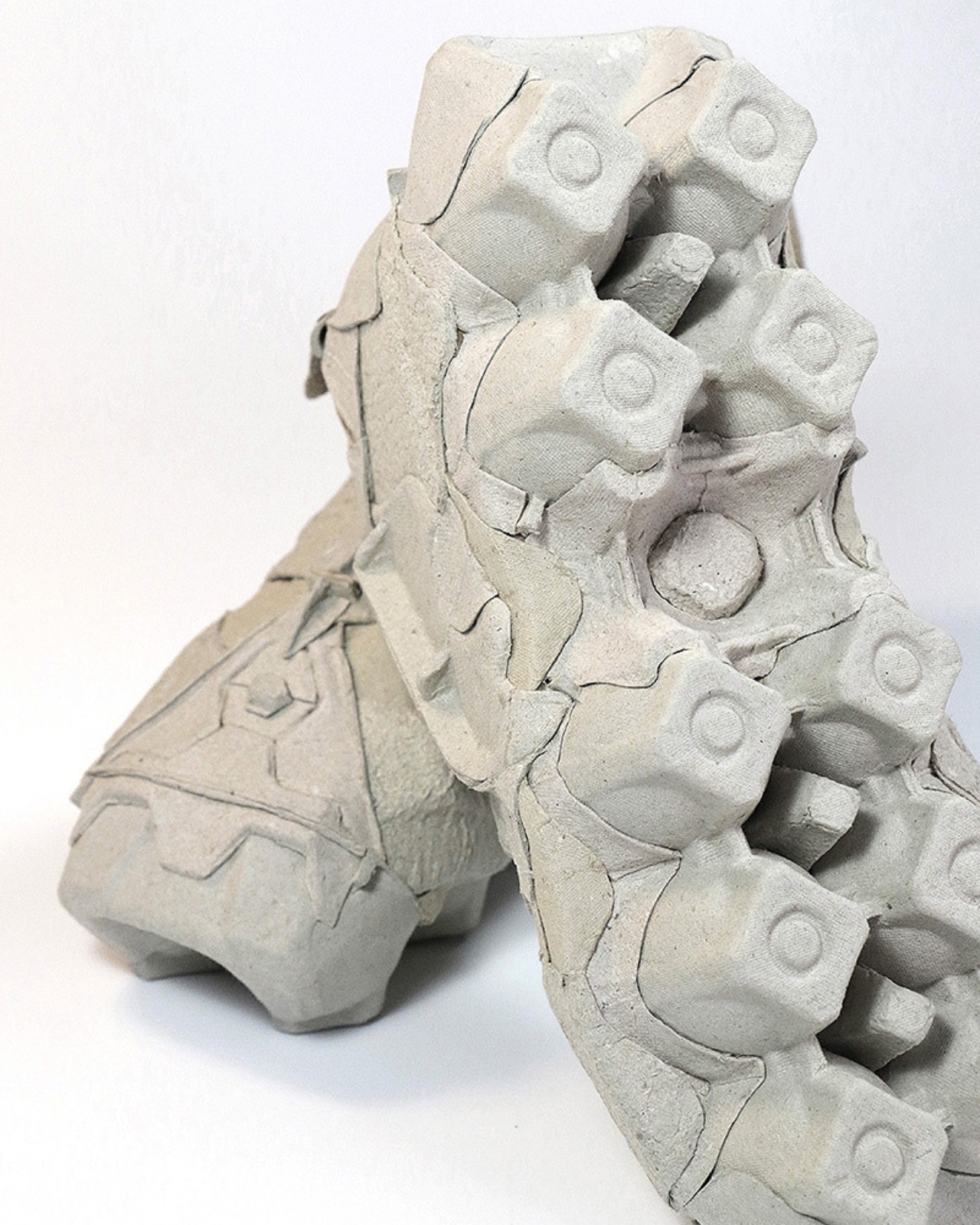 Let’s face it, we go through egg cartons like nobody’s business. They pile up, we recycle them (hopefully), and we never think about them again. But Kibardin’s sneakers force us to see these humble containers differently. They’re bumpy, they’re textured, and they have this inherent structure that, when you really look at it, is pretty remarkable. Who knew that the same design meant to cradle fragile eggs could be reimagined into footwear that looks like it belongs in a modern art museum?