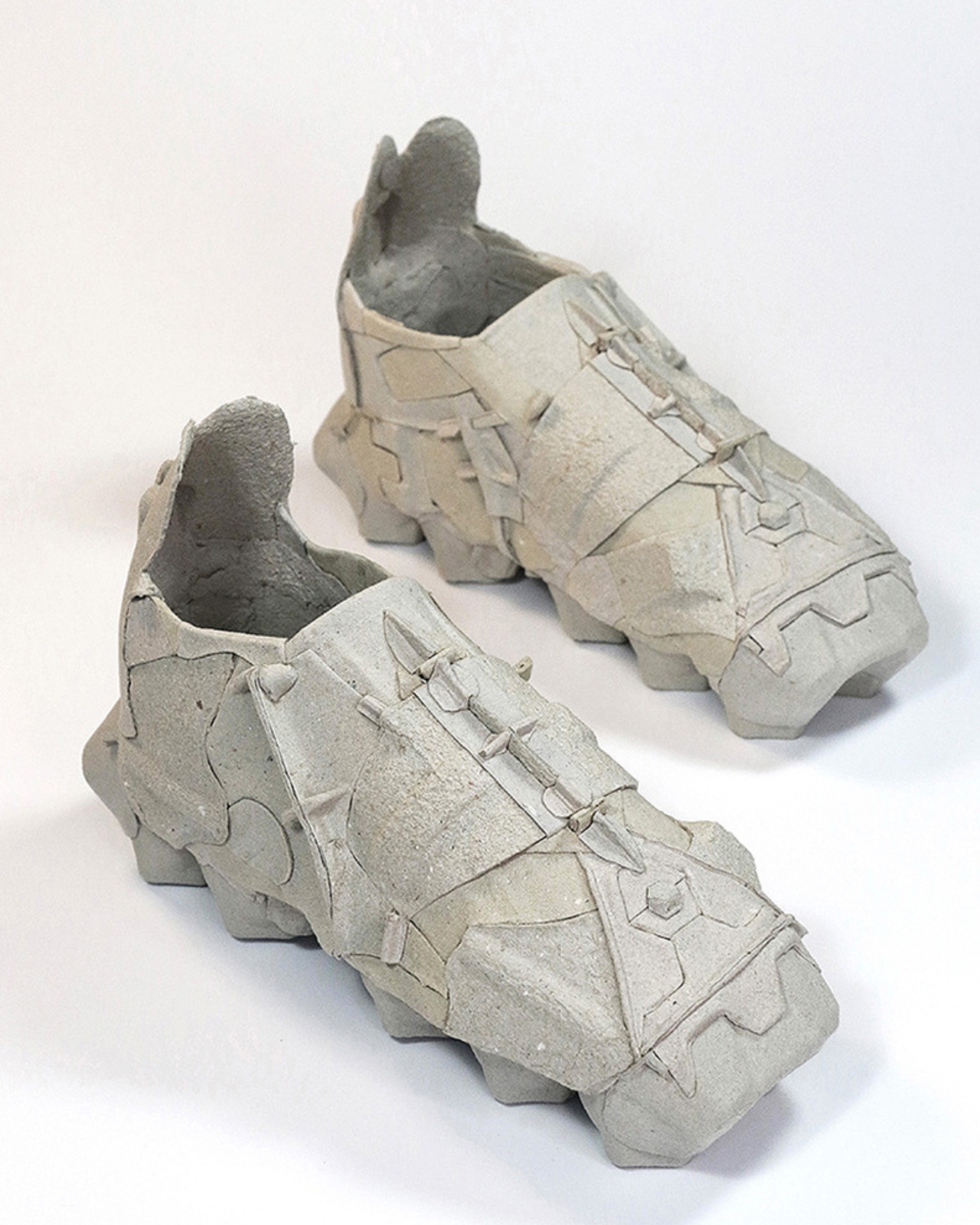 The project sits at this interesting intersection between fashion, art, and environmental commentary. Sure, you won’t see these on the feet of your favorite athletes (can you imagine the sponsorship deal? “Just eat it”?), but that’s not really the point. Positioned between art, fashion, and design, the work examines how everyday waste materials can be reinterpreted in ways that make us reconsider what we throw away.