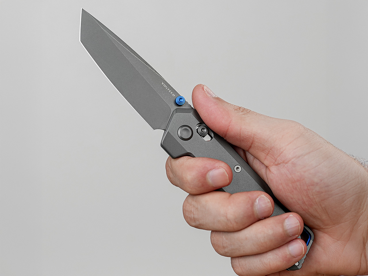 Speaking of the Destroyer Grey: this is the tactical-minded variant with a tanto blade. The 154CM steel gets a grey titanium coating for added surface hardness and wear resistance, plus that low-glare finish that’s become standard in hard-use knives. The tanto geometry brings a reinforced tip and angular lines suited to piercing and controlled cutting tasks. Vosteed positions this as the “tactical clarity” option, and the grey-on-grey colorway backs that up. It’s utilitarian in the best sense, form following function without excess decoration. The coating does double duty as protection and aesthetics, which is the kind of practical design choice that doesn’t need marketing fluff to justify itself.