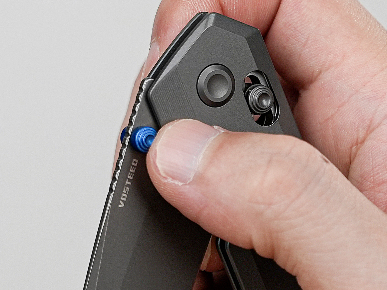 The Parallel measures 7.04 inches open with a 2.9-inch blade, putting it right in that sweet spot for daily tasks without feeling like you’re lugging around a combat folder. The handle sits at 4.13 inches, and here’s where things get interesting: that 0.28-inch profile (7.1mm if you prefer metric) makes this thinner than a pack of gum. For context, The James Brand’s Ellis Slim, which made waves for its own minimalist build, clocks in at 8mm. Vosteed went thinner and somehow kept a full-strength locking mechanism. That’s the kind of engineering that makes you stop and wonder how they pulled it off. Titanium handles keep the weight down without sacrificing durability, and the ambidextrous crossbar lock means lefties and righties get equal treatment. Dual thumb studs, reversible wire clip, triangle lanyard hole: all the functional bits are present and accounted for.