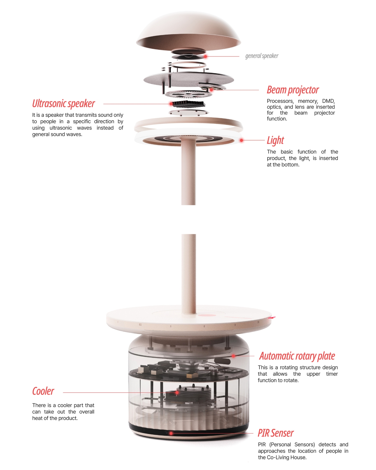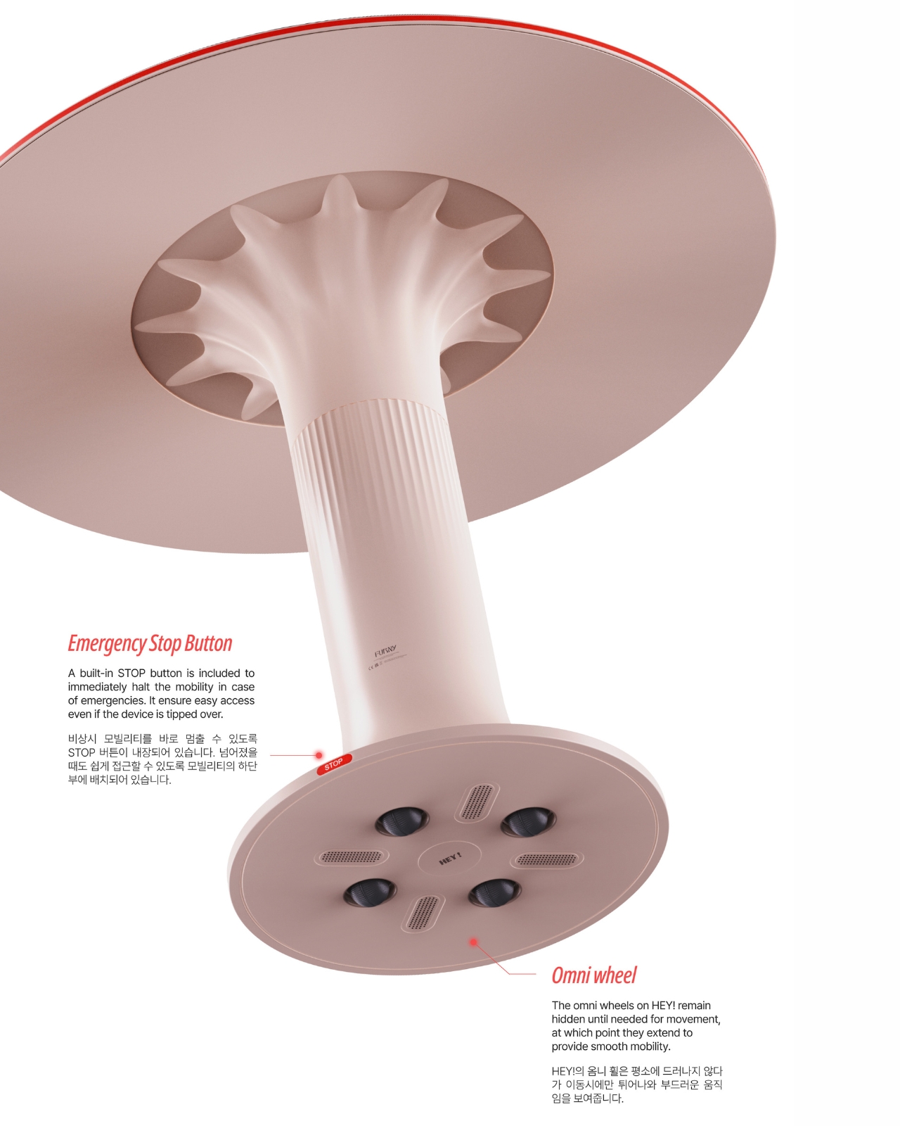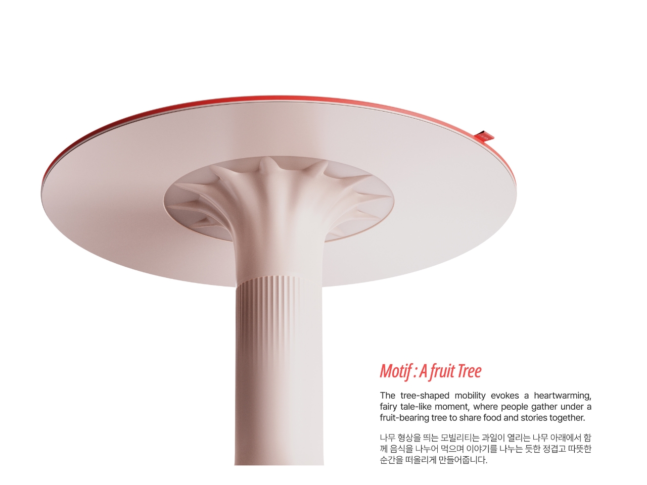 The mobility aspect is crucial here. FURNY isn’t stuck in one spot forcing interactions. It moves to where conversations naturally want to happen, adapting to how people actually use shared spaces throughout the day. When it’s not being used, the wheels tuck away so it blends seamlessly into the environment. It’s there when you need it, invisible when you don’t. The design itself reflects this approachable philosophy. The team chose ivory and beige as the main colors, keeping things neutral and calming. But they added red as an accent color to bring that lively energy without overwhelming the space. It’s furniture that wants to be part of the background until it needs to step forward and facilitate connection.